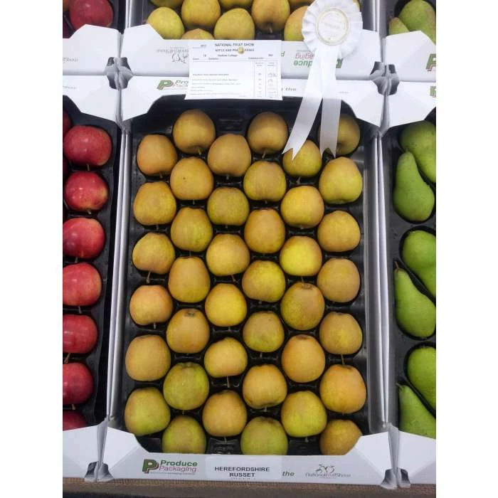 An excellent new dessert apple combining the rich aromatic flavour of Cox with a golden russet skin. Consistently a favourite in taste trials. The hereford Russet is renowned for it’s heavy, reliable cropping and can be grown successfully throughout the U.K. The trees are strong growers and crop so well that you will certainly have to thin the fruit. Late crop so ideal to combine with other trees if you want apples all the way through from late summer to mid winter.
