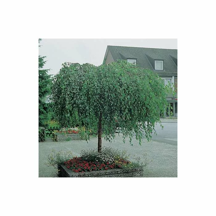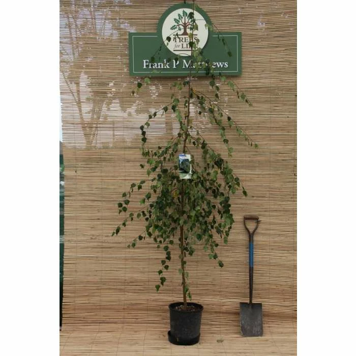 This classic weeping birch is a delicate tree, tall and slender, with branches which cause a large spread, creating an umbrella of leaves. Separate male and female catkins open in spring, adding another dimension to this beautiful weeping birch, which has peeling white bark, reminiscent of the closely-related silver birch. This will thrive in almost any soil, even wet and poorly-drained soils, thanks to the hardy nature of this tree.
