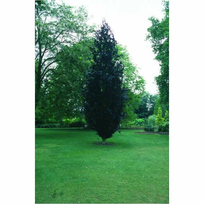 A dark purple leaved fastigiata form that contrasts well with Dawyck Gold.